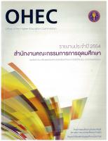 รายงานประจำปี 2554 ของสำนักงานคณะกรรมการการอุดมศึกษา กล่าวถึงเรื่องราวพิเศษในปี 2554 (Speical Story in 2011), ผลการดำเนินงานและภาพรวมของอุดมศึกษาในด้านต่าง ๆ เช่น ความร่วมมือหรือการส่งเสริมงานวิจัย เป็นต้น, งบประมาณรายจ่ายประจำปี รวมถึงสรุปข้อมูลสถิติต่าง ๆ -