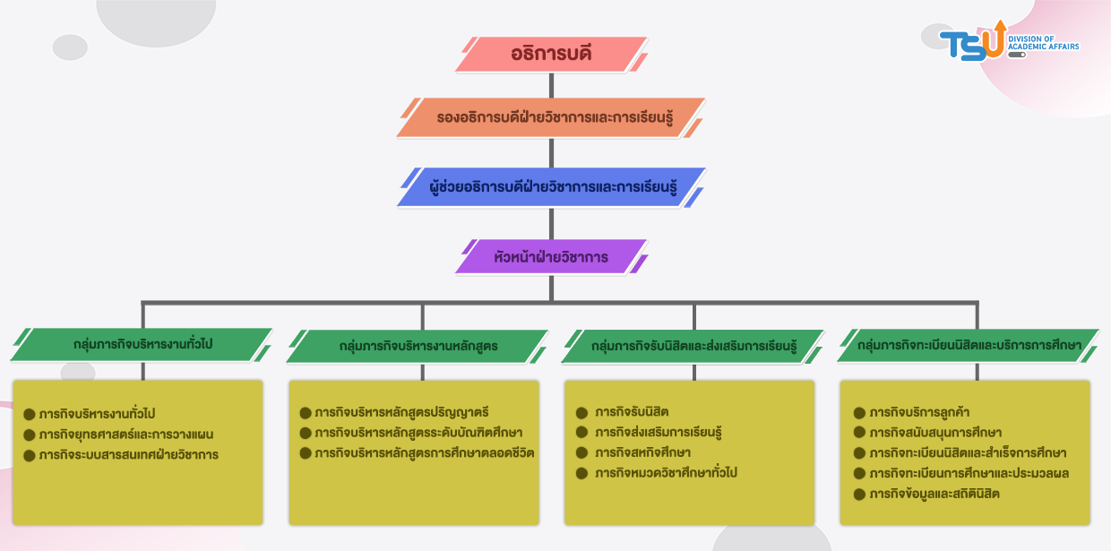 - แผนผังโครงสร้างการบริหารฝ่ายวิชาการและการเรียนรู้ มหาวิทยาลัยทักษิณ