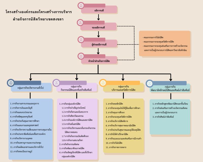 - แผนผังโครงสร้างองค์กรและโครงสร้างการบริหารฝ่ายกิจการนิสิต มหาวิทยาลัยทักษิณ วิทยาเขตสงขลา