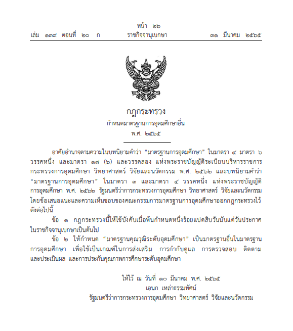 กฎกระทรวง กำหนดมาตรฐานการอุดมศึกษาอื่น พ.ศ. 2565