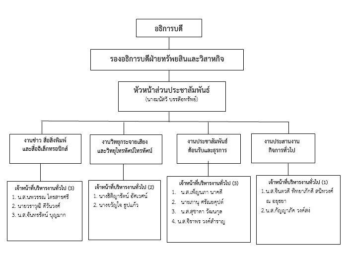 - แผนภูมิโครงสร้างการบริหาร ส่วนประชาสัมพันธ์ มหาวิทยาลัยเทคโนโลยีสุรนารี