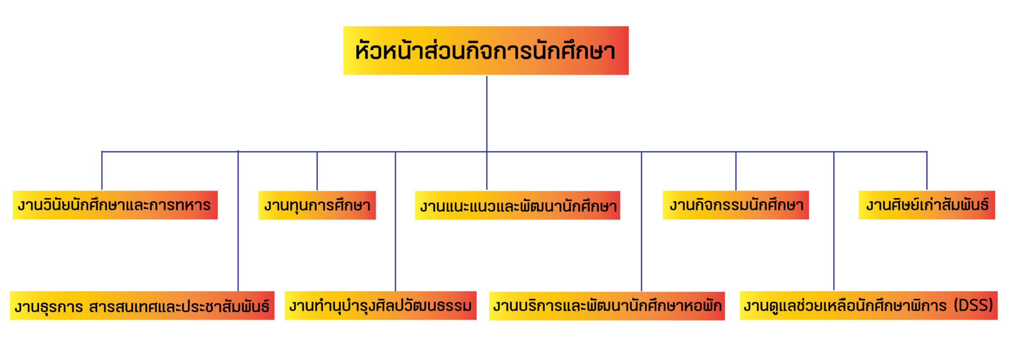- แผนผังโครงสร้างองค์กรส่วนกิจการนักศึกษา มหาวิทยาลัยเทคโนโลยีสุรนารี