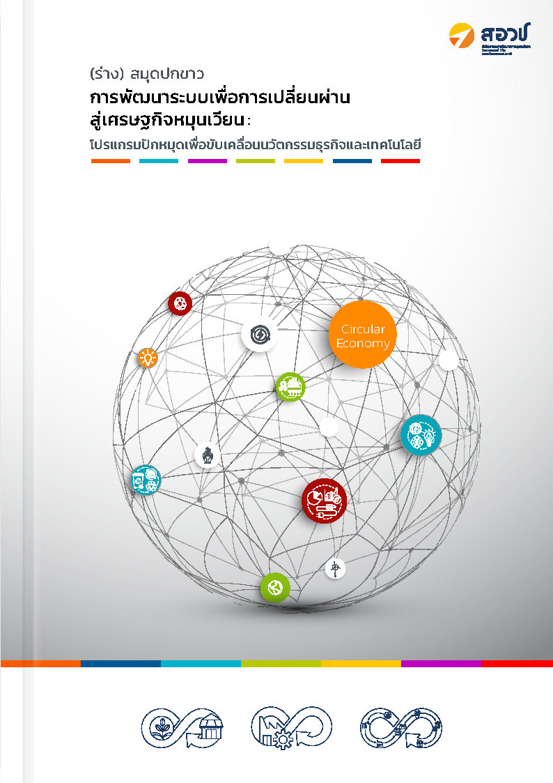 - (ร่าง) สมุดปกขาว การพัฒนาระบบเพื่อการเปลี่ยนผ่านสู่เศรษฐกิจหมุนเวียน: โปรแกรมปักหมุดเพื่อขับเคลื่อนนวัตกรรมธุรกิจและเทคโนโลยี จัดทำโดย สอวช. นำเสนอรายละเอียดประกอบด้วย 1. ที่มาและความสำคัญ อาทิ 1) ที่มาของการพัฒนานโยบายระบบเศรษฐกิจหมุนเวียน: จากนโยบาย BCG ซึ่งเน้น 4 อุตสาหกรรมยุทธศาสตร์ สู่การพัฒนานโยบายระบบเศรษฐกิจหมุนเวียน 2) ความจำเป็นของระบบเศรษฐกิจหมุนเวียน 3) นิยามของระบบเศรษฐกิจหมุนเวียน 2. การดำเนินงานด้านระบบเศรษฐกิจหมุนเวียนในต่างประเทศ 3. สถานการณ์ด้านเศรษฐกิจหมุนเวียนของไทย 4. ระบบนิเวศที่เอื้อต่อการสร้างระบบเศรษฐกิจหมุนเวียนของไทย 5. ข้อเสนอการพัฒนาระบบเศรษฐกิจหมุนเวียนของไทย