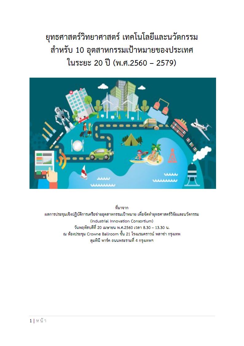 ยุทธศาสตร์วิทยาศาสตร์ เทคโนโลยีและนวัตกรรมสำหรับ 10 อุตสาหกรรมเป้าหมายของประเทศในระยะ 20 ปี (พ.ศ.2560 – 2579)