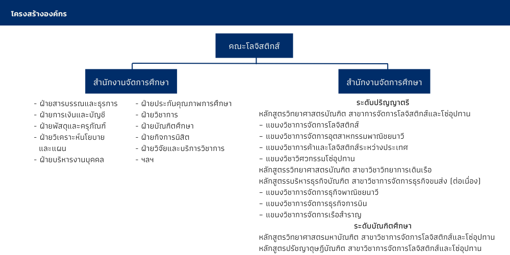 - แผนผังโครงสร้างองค์กร คณะโลจิสติกส์ มหาวิทยาลัยบูรพา