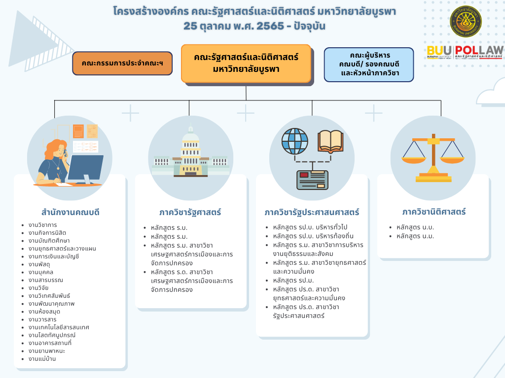 - แผนผังโครงสร้างองค์กรคณะรัฐศาสตร์และนิติศาสตร์ มหาวิทยาลัยบูรพา