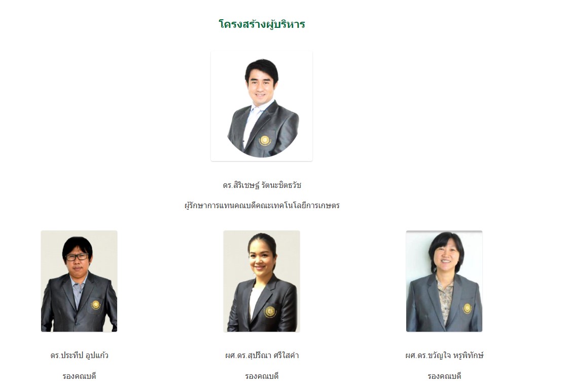 โครงสร้างผู้บริหารคณะเทคโนโลยีการเกษตร มหาวิทยาลัยบูรพา วิทยาเขตสระแก้ว