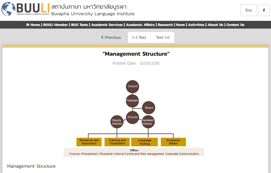 - โครงสร้างบริหารสถาบันภาษา มหาวิทยาลัยบูรพา