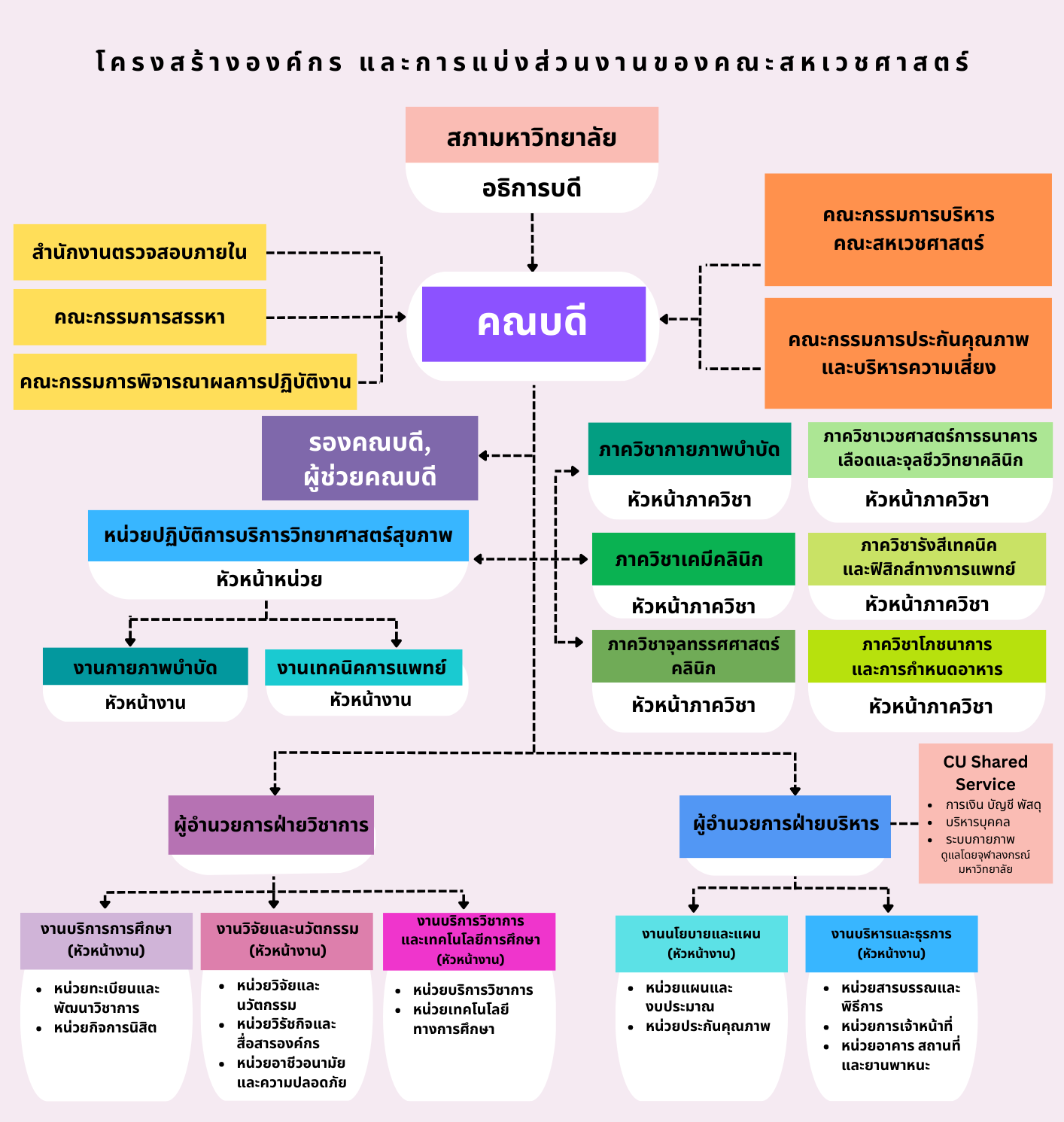 - แผนผังโครงสร้างองค์กรและการแบ่งส่วนงานของคณะสหเวชศาสตร์ จุฬาลงกรณ์มหาวิทยาลัย