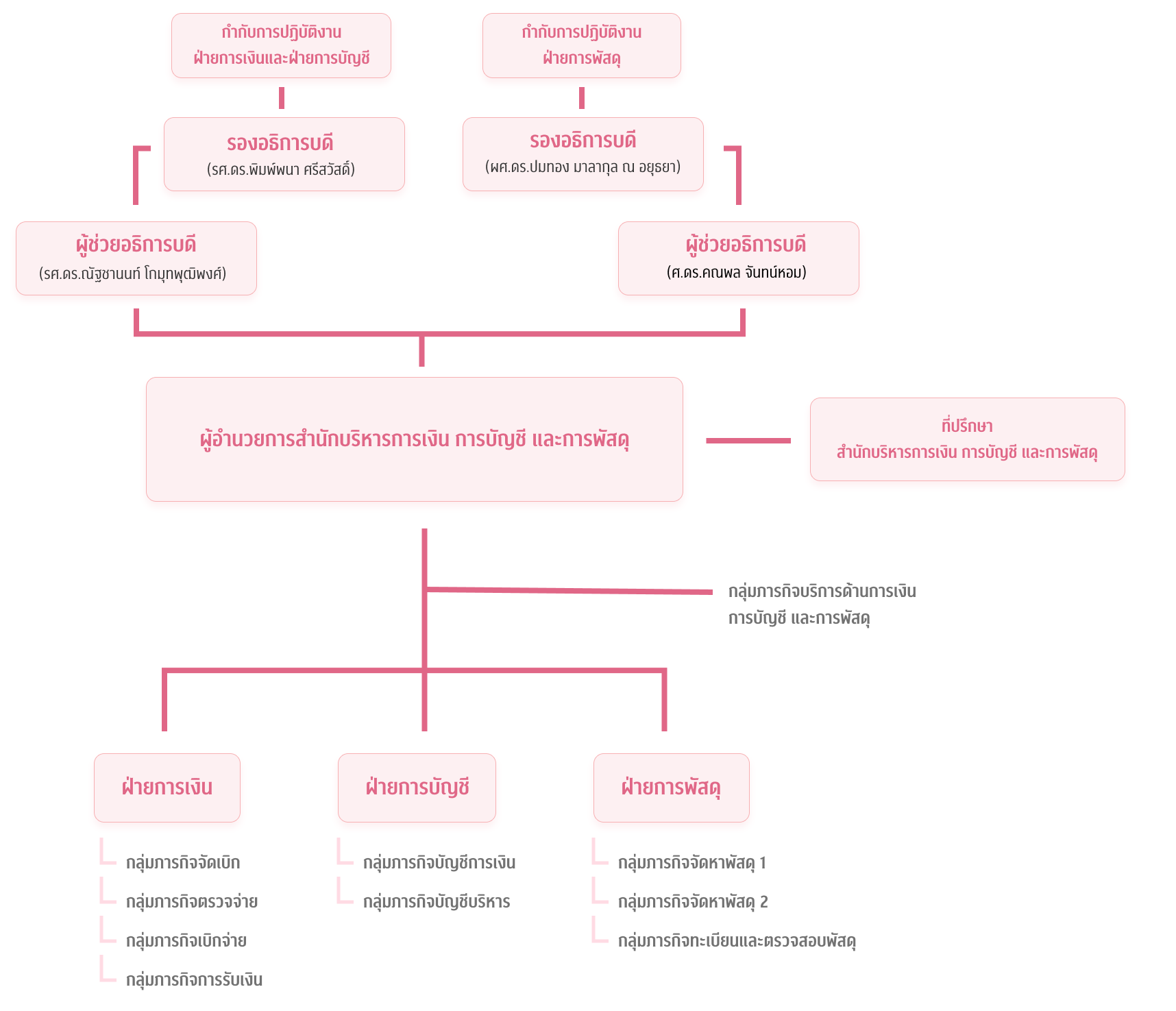 - แผนผังโครงสร้างองค์กรสำนักบริหารการเงิน การบัญชี และการพัสดุ จุฬาลงกรณ์มหาวิทยาลัย