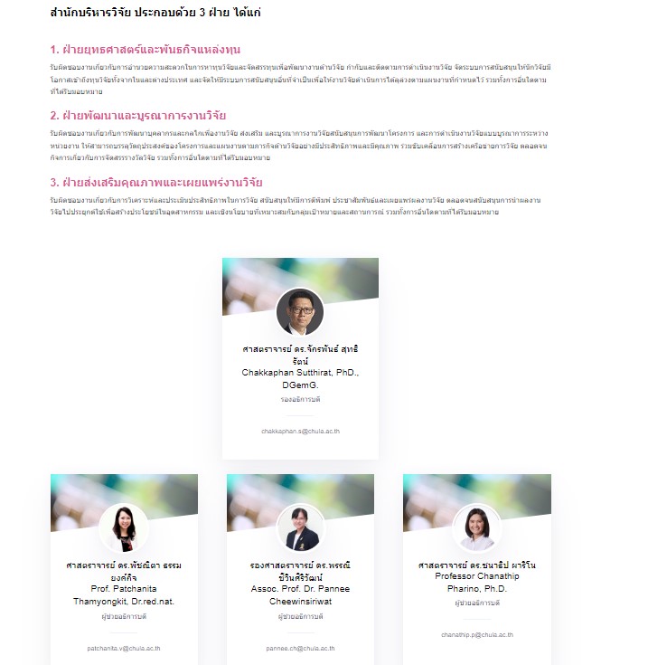 โครงสร้างบริหารสำนักบริหารวิจัย จุฬาลงกรณ์มหาวิทยาลัย
