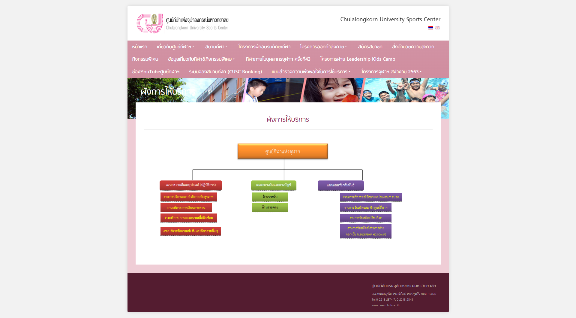 - แผนผังโครงสร้างองค์กรผังการให้บริการ ศูนย์กีฬาแห่งจุฬาลงกรณ์มหาวิทยาลัย