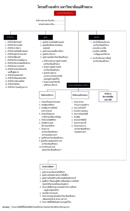- แผนผังโครงสร้างองค์กร และโครงสร้างบริหารของมหาวิทยาลัยแม่ฟ้าหลวง
