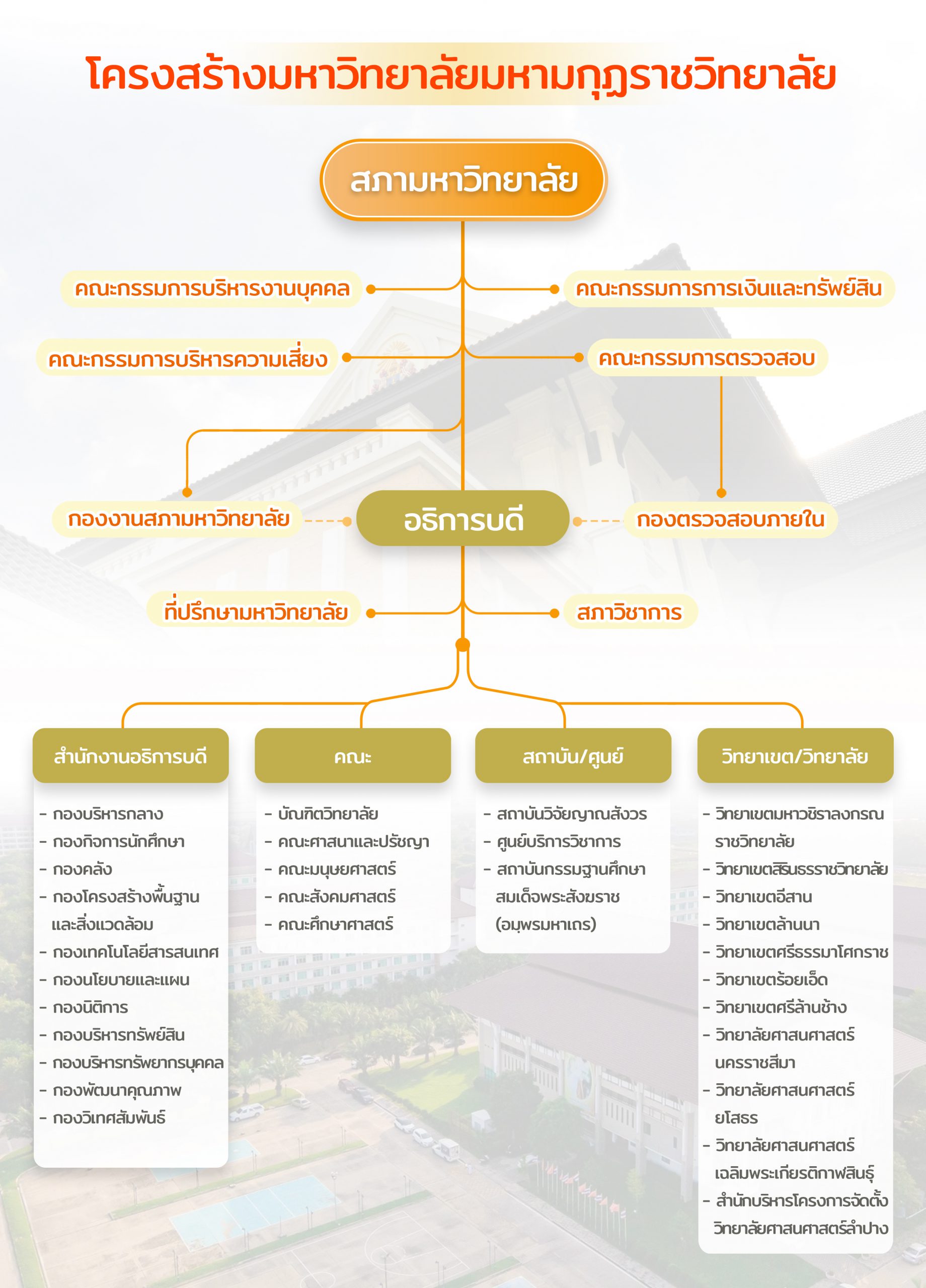 - แผนผังโครงสร้างองค์กรและโครงสร้างบริหารมหาวิทยาลัยมหามกุฏราชวิทยาลัย