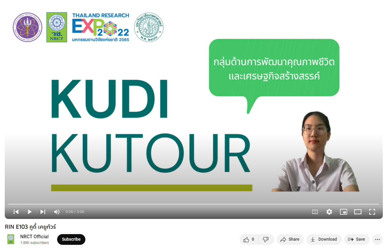 - ผลงานสายนวัตกรรมอุดมศึกษา ประจำปี 2565 ด้านการพัฒนาคุณภาพชีวิตและเศรษฐกิจสร้างสรรค์: คูดี้ เคยูทัวร์