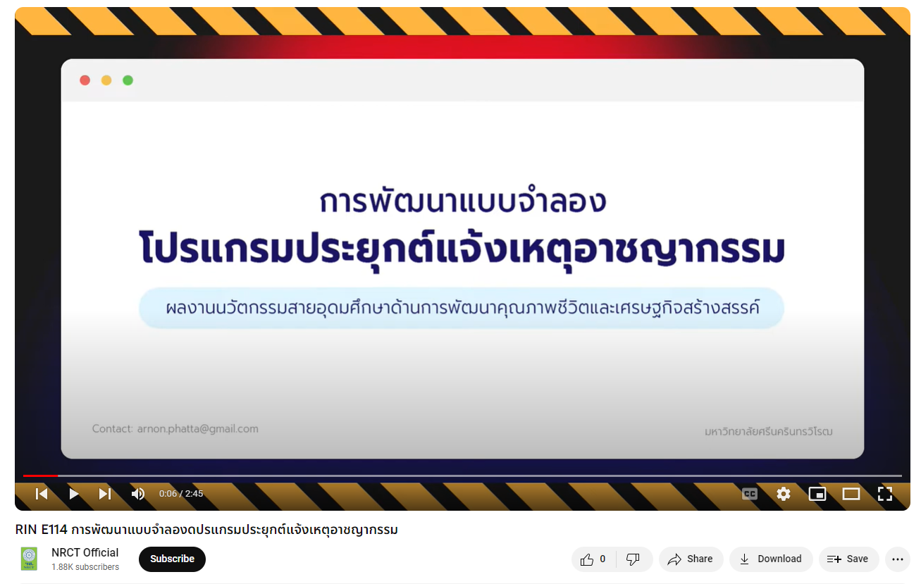 RIN E114 การพัฒนาแบบจำลองโปรแกรมประยุกต์แจ้งเหตุอาชญากรรม