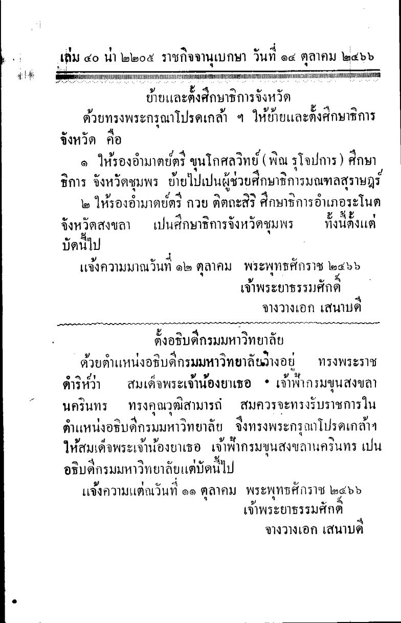 ย้ายและตั้งศึกษาธิการจังหวัด ตั้งอธิบดีกรมมหาวิทยาลัย