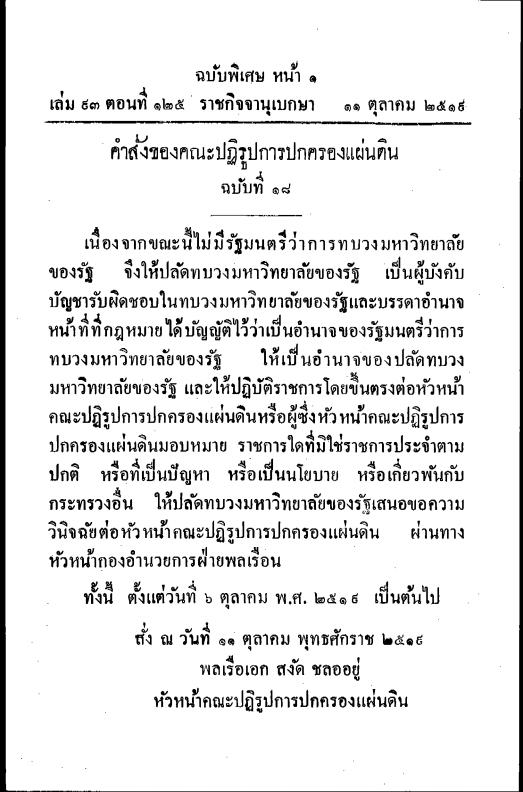 คำสั่งของคณะปฏิรูปการปกครองแผ่นดิน ฉบับที่ 18