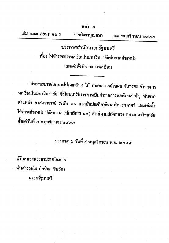 ประกาศสำนักนายกรัฐมนตรี เรื่อง ให้ข้าราชการพลเรือนในมหาวิทยาลัยพ้นจากตำแหน่งและแต่งตั้งข้าราชการพลเรือน (ปลัดทบวงมหาวิทยาลัย ศาสตราจารย์วรเดช จันทรศร)