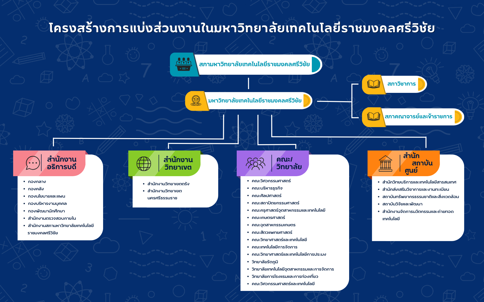 - แผนภูมิโครงสร้างการจัดแบ่งส่วนราชการมหาวิทยาลัยเทคโนโลยีราชมงคลศรีวิชัย
