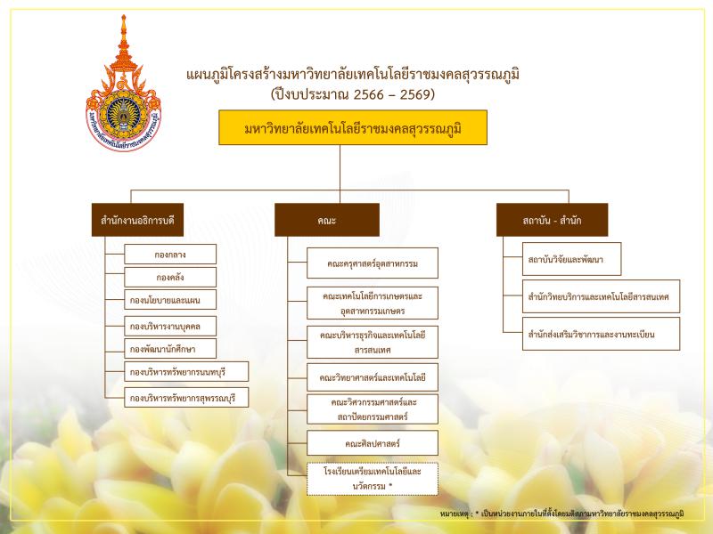 - แผนภูมิโครงสร้างมหาวิทยาลัยเทคโนโลยีราชมงคลสุวรรณภูมิ