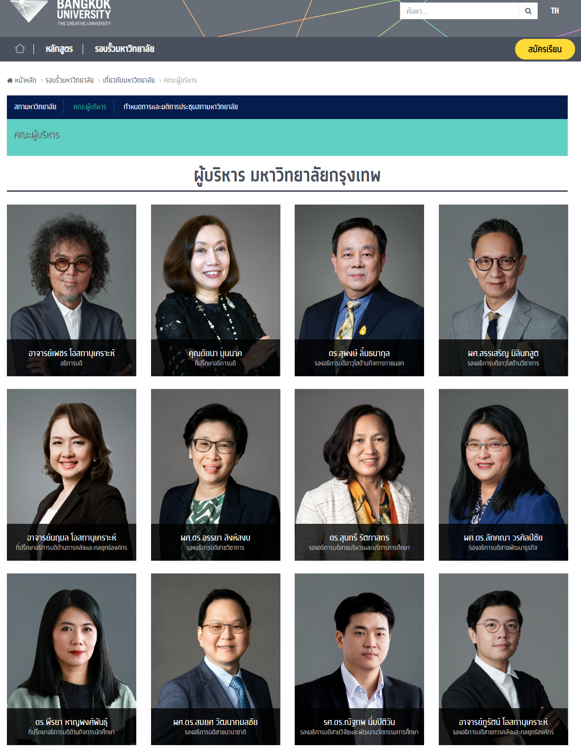 - โครงสร้างคณะผู้บริหารมหาวิทยาลัยกรุงเทพ