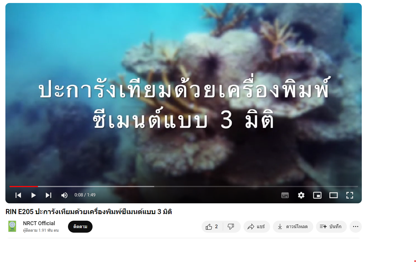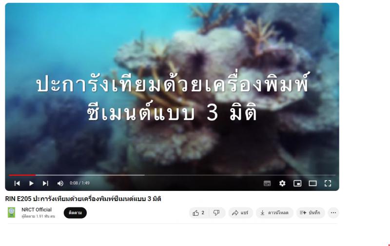 RIN E205 ปะการังเทียมด้วยเครื่องพิมพ์ซีเมนต์แบบ 3 มิติ