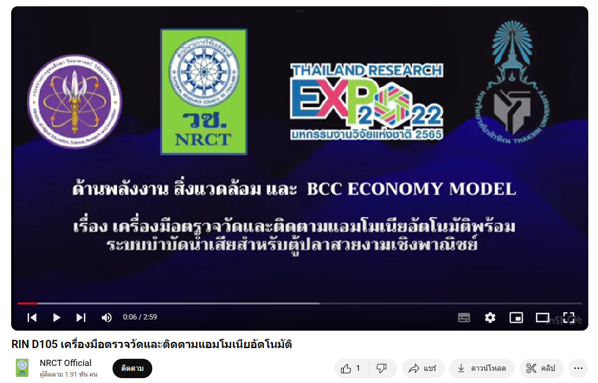 - ผลงานสายนวัตกรรมอุดมศึกษา ประจำปี 2565 ด้านพลังงาน สิ่งแวดล้อม และ BCG Economy Model: เครื่องมือตรวจวัดและติดตามแอมโมเนียอัตโนมัติ