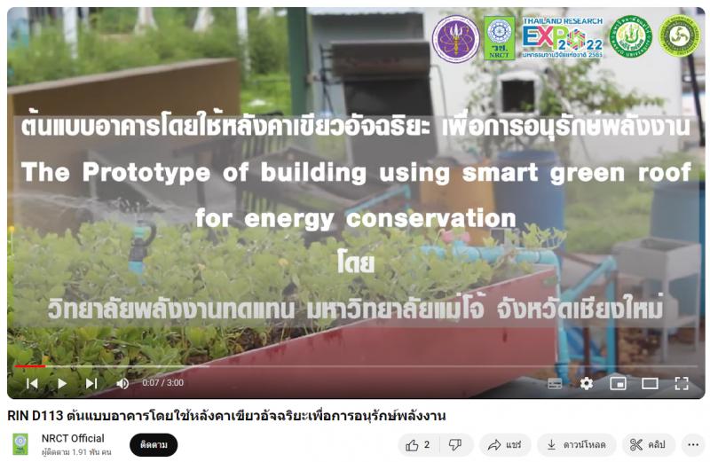 RIN D113 ต้นแบบอาคารโดยใช้หลังคาเขียวอัจฉริยะเพื่อการอนุรักษ์พลังงาน
