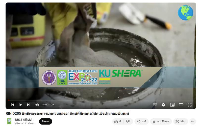 - ผลงานสายนวัตกรรมอุดมศึกษา ประจำปี 2565 ด้านพลังงาน สิ่งแวดล้อม และ BCG Economy Model: อิทธิพลของการบ่มด้วยแสงอาทิตย์ที่มีผลต่อวัสดุเชิงประกอบซีเมนต์