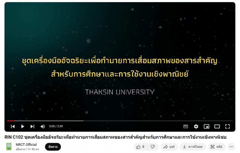 - ผลงานสายนวัตกรรมอุดมศึกษา ประจำปี 2565 ด้านการพัฒนาเทคโนโลยี ปัญญาประดิษฐ์ อุปกรณ์อัจฉริยะ: ชุดเครื่องมืออัจฉริยะเพื่อทำนายการเสื่อมสภาพของสารสำคัญสำหรับการศึกษาและการใช้งานเชิงพาณิชย์