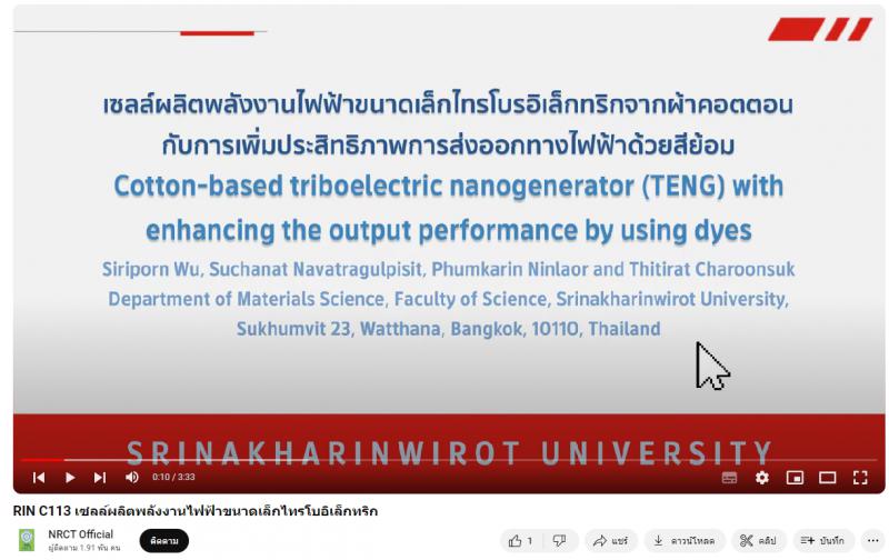 - เซลล์ผลิตพลังงานไฟฟ้าขนาดเล็กไทรโบอิเล็กทริกจากผ้าคอตตอนกับการเพิ่มประสิทธิภาพการส่งออกทางไฟฟ้าด้วยสีย้อม