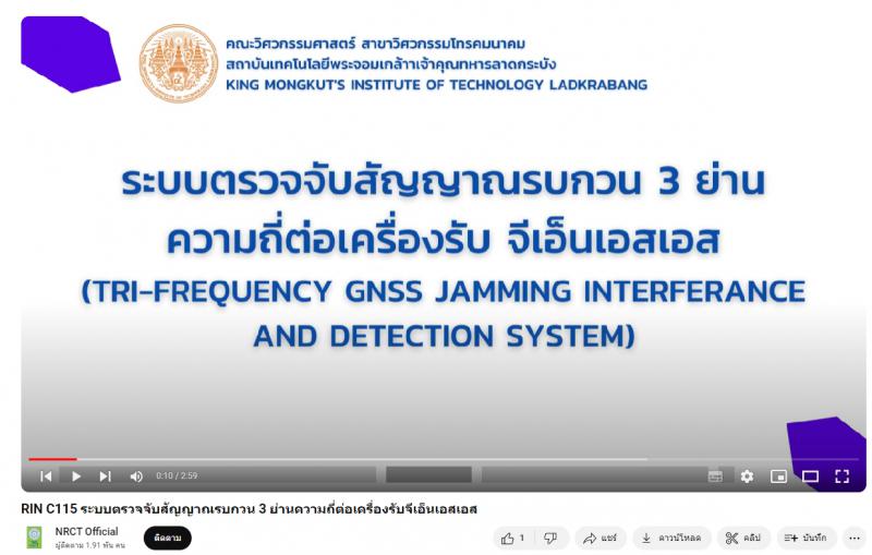 - ผลงานสายนวัตกรรมอุดมศึกษา ประจำปี 2565 ด้านการพัฒนาเทคโนโลยี ปัญญาประดิษฐ์ อุปกรณ์อัจฉริยะ: ระบบตรวจจับสัญญาณรบกวน 3 ย่านความถี่ต่อเครื่องรับจีเอ็นเอสเอส