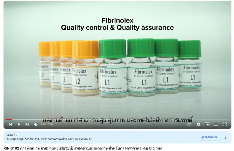 RIN B102 การพัฒนาพลาสมาแห้งเพื่อใช้เป็นวัสดุควบคุมคุณภาพสำหรับการตรวจวัดระดับ D dimer
