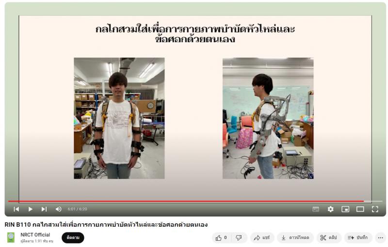 - ผลงานสายนวัตกรรมอุดมศึกษา ประจำปี 2565 ด้านการสาธารณสุข สุขภาพ และเทคโนโลยีทางการแพทย์: กลไกสวมใส่เพื่อการกายภาพบำบัดหัวไหล่และข้อศอกด้วยตนเอง