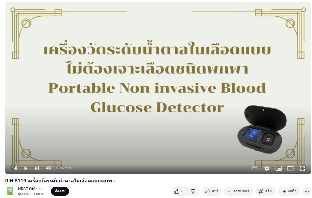 - ผลงานสายนวัตกรรมอุดมศึกษา ประจำปี 2565 ด้านการสาธารณสุข สุขภาพ และเทคโนโลยีทางการแพทย์: เครื่องวัดระดับน้ำตาลในเลือดแบบพกพา