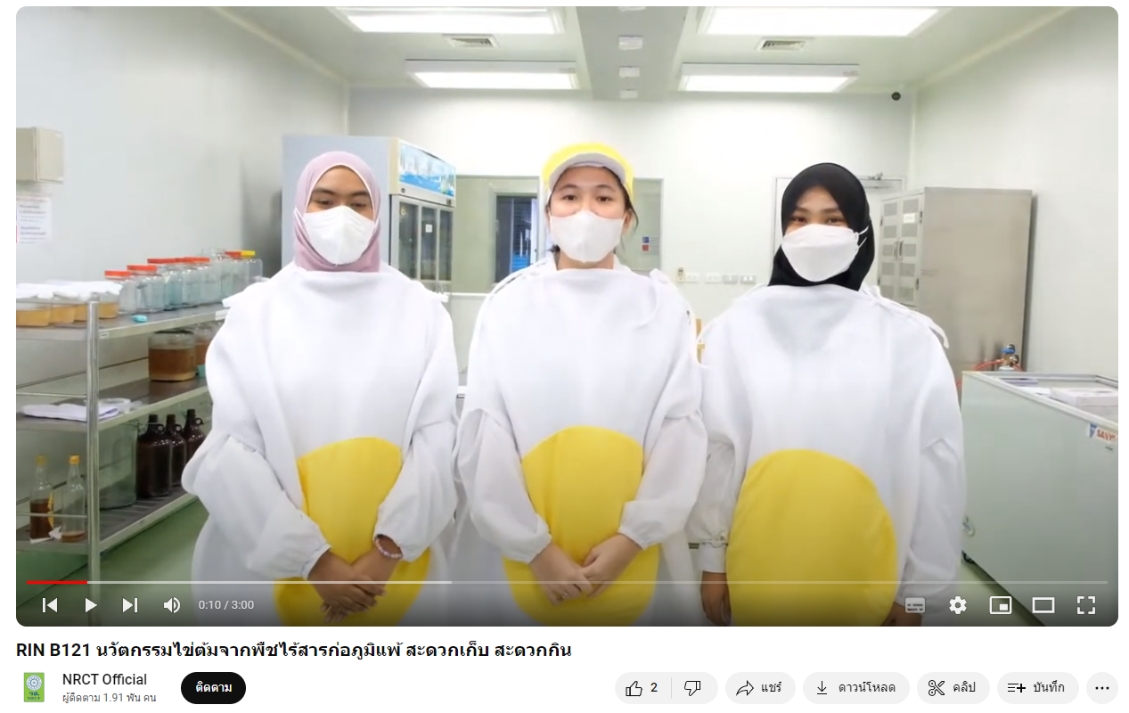 RIN B121 นวัตกรรมไข่ต้มจากพืชไร้สารก่อภูมิแพ้ สะดวกเก็บ สะดวกกิน