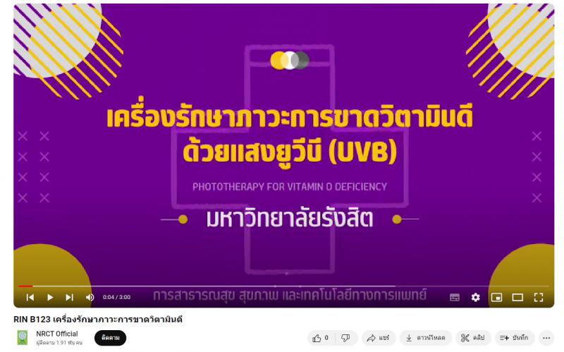 นวัตกรรม ผลงานสายนวัตกรรมอุดมศึกษา ประจำปี 2565 ด้านการสาธารณสุข สุขภาพ และเทคโนโลยีทางการแพทย์ การแพทย์ เทคโนโลยีทางการแพทย์ มหาวิทยาลัยรังสิต วิตามินดีNew Tags