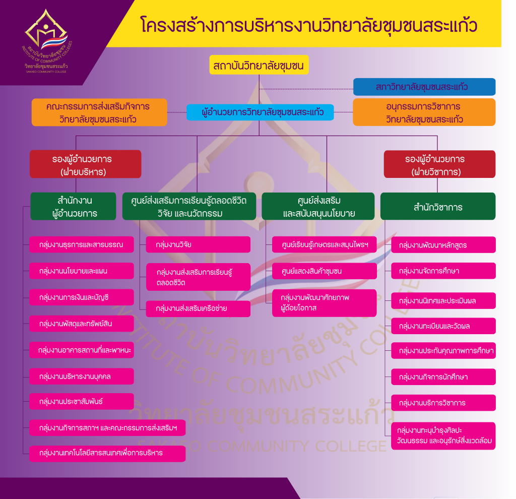 - โครงสร้างการบริหารงานวิทยาลัยชุมชนสระแก้ว