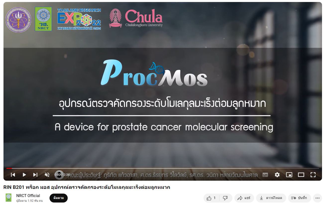 - ผลงานสายนวัตกรรมอุดมศึกษา ประจำปี 2565 ด้านการสาธารณสุข สุขภาพ และเทคโนโลยีทางการแพทย์: พร็อก มอส อุปกรณ์ตรวจคัดกรองระดับโมเลกุลมะเร็งต่อมลูกหมาก
