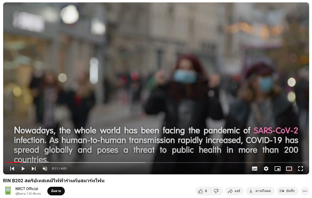 - ผลงานสายนวัตกรรมอุดมศึกษา ประจำปี 2565 ด้านการสาธารณสุข สุขภาพ และเทคโนโลยีทางการแพทย์: สตริปเทสเคมีไฟฟ้าร่วมกับสมาร์ทโฟน