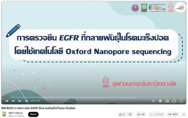 - การตรวจยีน EGFR ที่กลายพันธุ์ในโรคมะเร็งปอด โดยใช้เทคโนโลยี Oxford Nanopore sequencing