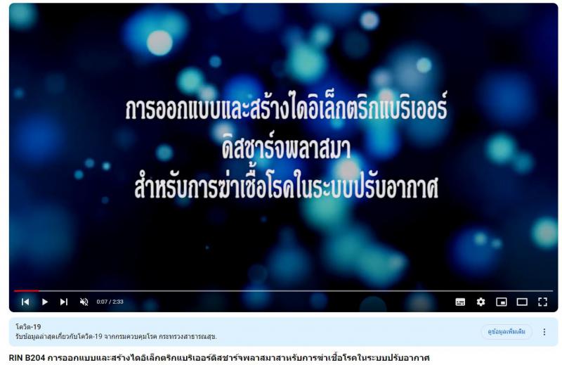 - RIN B204 การออกแบบและสร้างไดอิเล็กตริกแบริเออร์ดิสชาร์จพลาสมาสำหรับการฆ่าเชื้อโรคในระบบปรับอากาศ