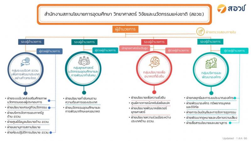 - แผนผังโครงสร้างองค์กรสำนักงานสภานโยบายการอุดมศึกษา วิทยาศาสตร์ วิจัยและนวัตกรรมแห่งชาติ (สอวช.)