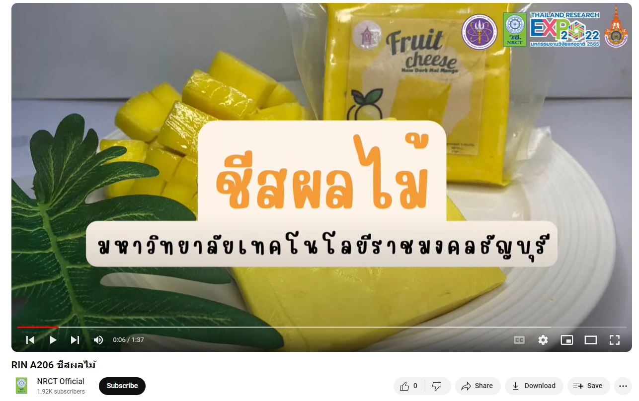 - ผลงานสายนวัตกรรมอุดมศึกษา ประจำปี 2565 ด้านการเกษตรและอุตสาหกรรม: ชีสผลไม้