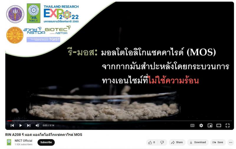 - ผลงานสายนวัตกรรมอุดมศึกษา ประจำปี 2565 ด้านการเกษตรและอุตสาหกรรม: รี มอส มอลโตโอลิโกแซคคาไรด์ MOS