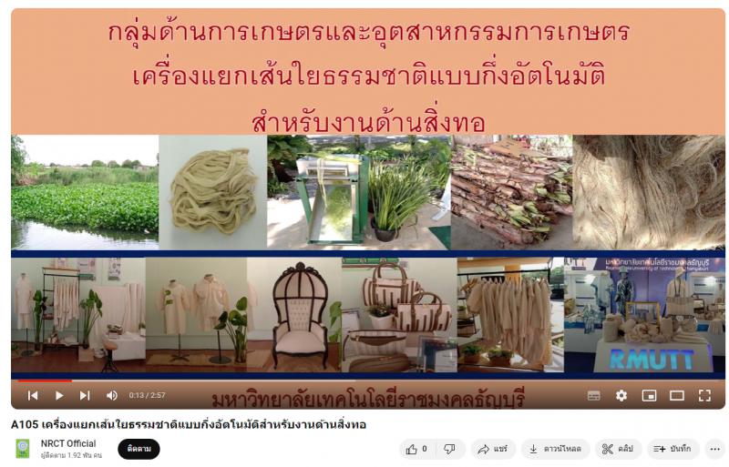 นวัตกรรม นวัตกรรมทางการเกษตร ผลงานสายนวัตกรรมอุดมศึกษา ประจำปี 2566 ด้านการเกษตรและอุตสาหกรรมการเกษตร มหาวิทยาลัยเทคโนโลยีราชมงคลธัญบุรี เส้นใยธรรมชาติ สิ่งทอNew Tags