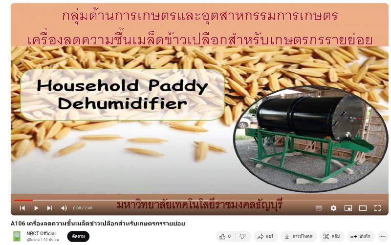 - ผลงานสายนวัตกรรมอุดมศึกษา ประจำปี 2566 ด้านการเกษตรและอุตสาหกรรมการเกษตร: เครื่องลดความชื้นเมล็ดข้าวเปลือกสำหรับเกษตรกรรายย่อย