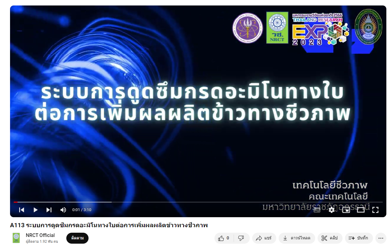 A113 ระบบการดูดซึมกรดอะมิโนทางใบต่อการเพิ่มผลผลิตข้าวทางชีวภาพ
