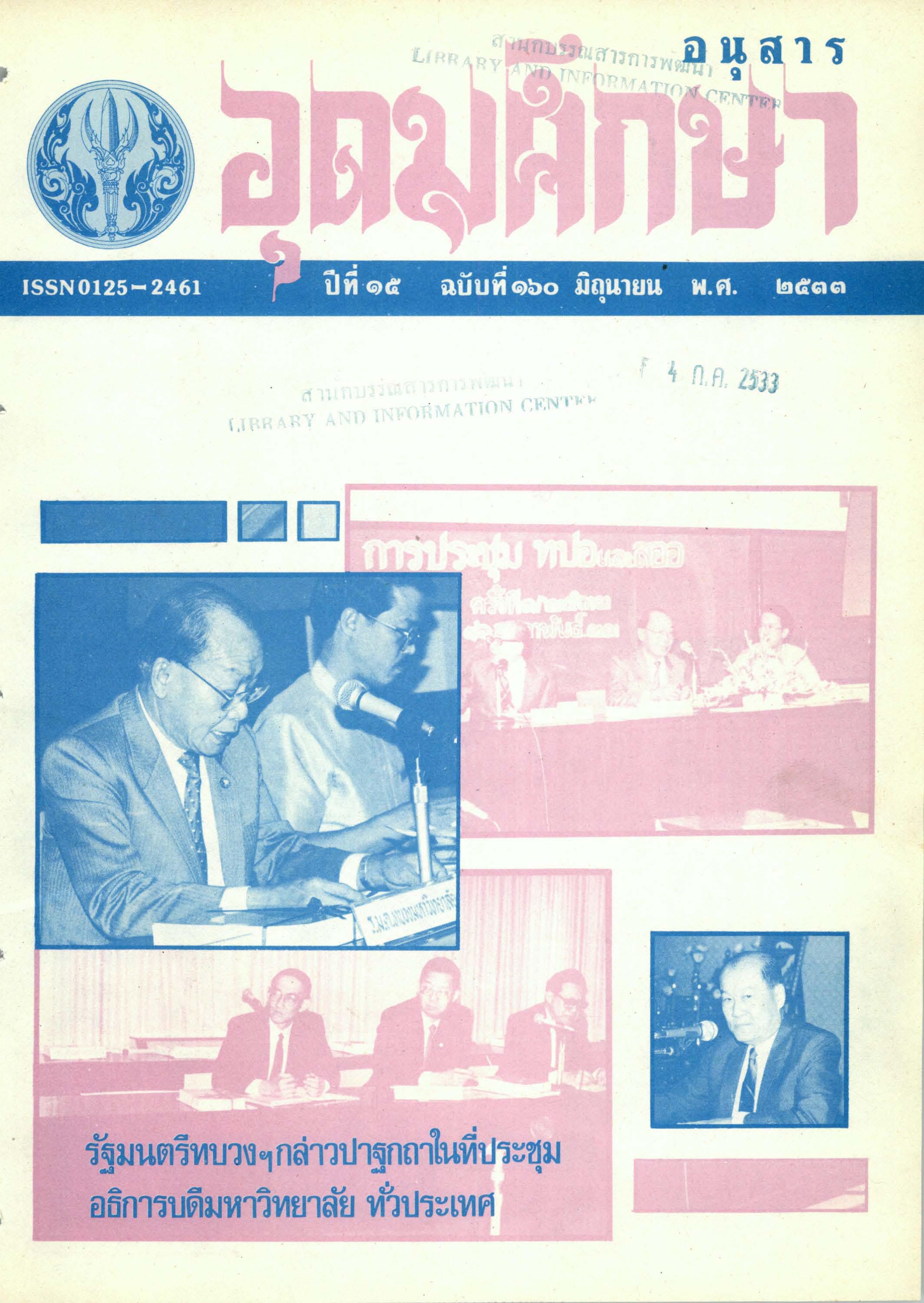 อนุสารอุดมศึกษา ปีที่ 15 ฉบับที่ 160 มิถุนายน 2533
